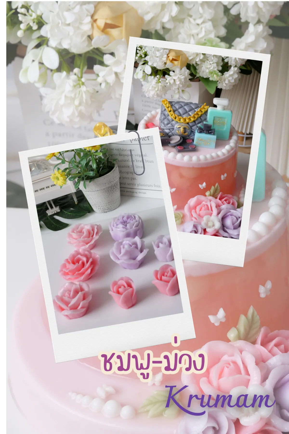 Workshop : จัดแต่งเค้กทรงสูง โทนสีชมพู